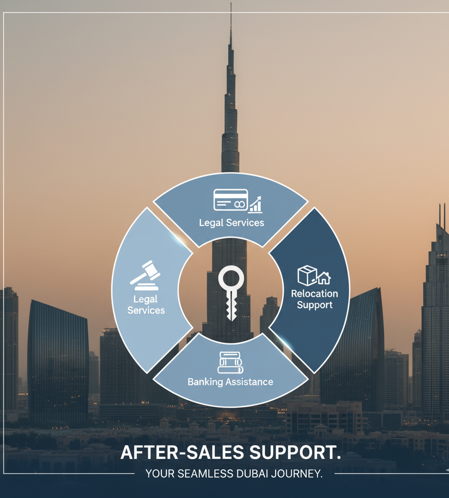 Investing in Dubai should be exciting, not stressful. With our exclusive after-sales support, we handle the complexities for you. Need a bank account? We'll guide you. Navigating legal paperwork? Our experts are on hand. Planning your move? We'll assist with relocation services. Consider us your personal concierge for a worry-free investment experience. Your peace of mind is our priority.